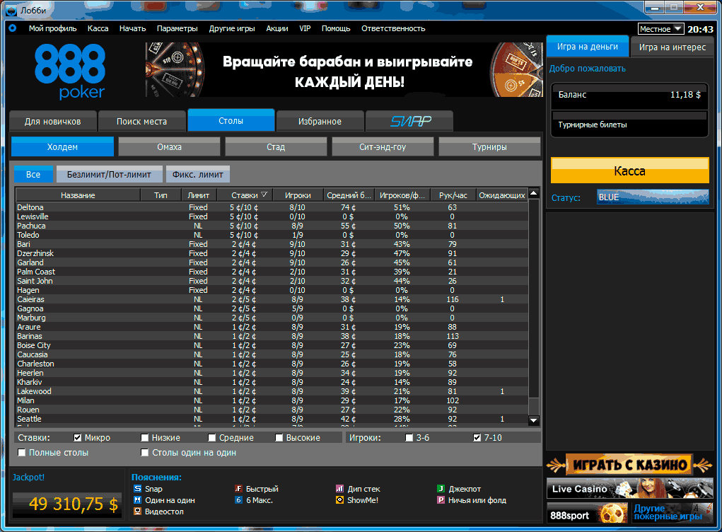 Скачать клиентскую версию 888 Покер