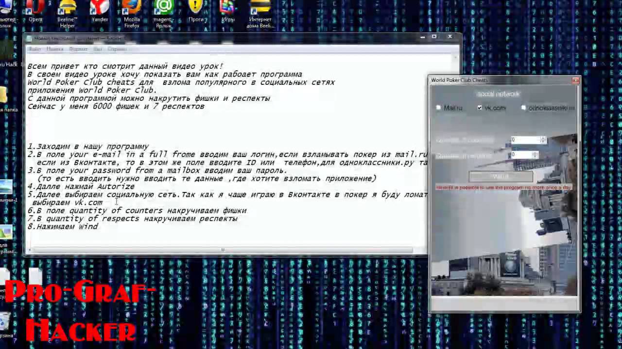 Большую популярность в последнее время приобрела программа для взлома World Poker Club – cheats, скачать бесплатно которую предлагает каждый второй ресурс. Ее бесполезность была доказана многократно, к тому же ее частенько снабжают сопутствующими вредоносными файлами. Стоит ли виртуальная валюта безопасности компьютера? Каждому пользователю решать самому.