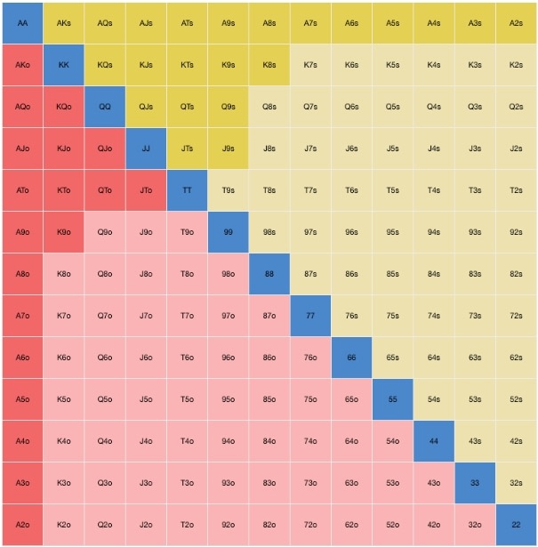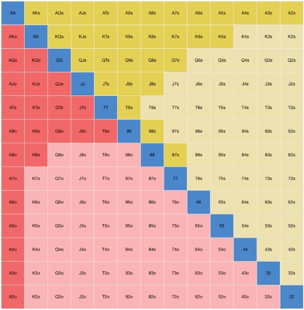 Желтый, красный и синий цвета обозначают карманные карты, с которыми следует делать рейзы на позиции баттона.