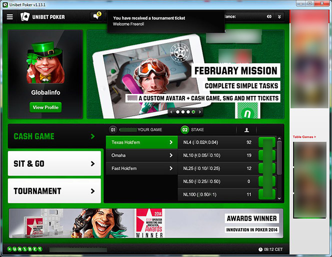 Было бы неправильно не включить в рейтинг онлайн покер румов Unibet Poker. Рум прославился тем, что предлагает псевдо 3D оформление столов, благодаря чему покер становится еще более интересным и увлекательным. Также здесь есть и другие плюсы: