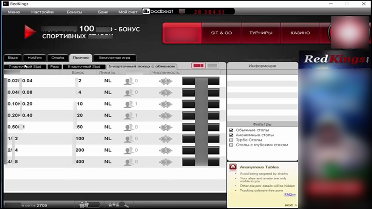 Почетное место в ТОП 10 покер румов 2017 занимает RedKingsPoker – самый крупный оператор сети OnGame. Здесь отличные предложения как для профессионалов, так и для новичков. Дневной трафик комнаты не менее 5000 уникальных пользователей, поэтому тут всегда можно найти соперника для игры на любых лимитах. Другие плюсы оператора: