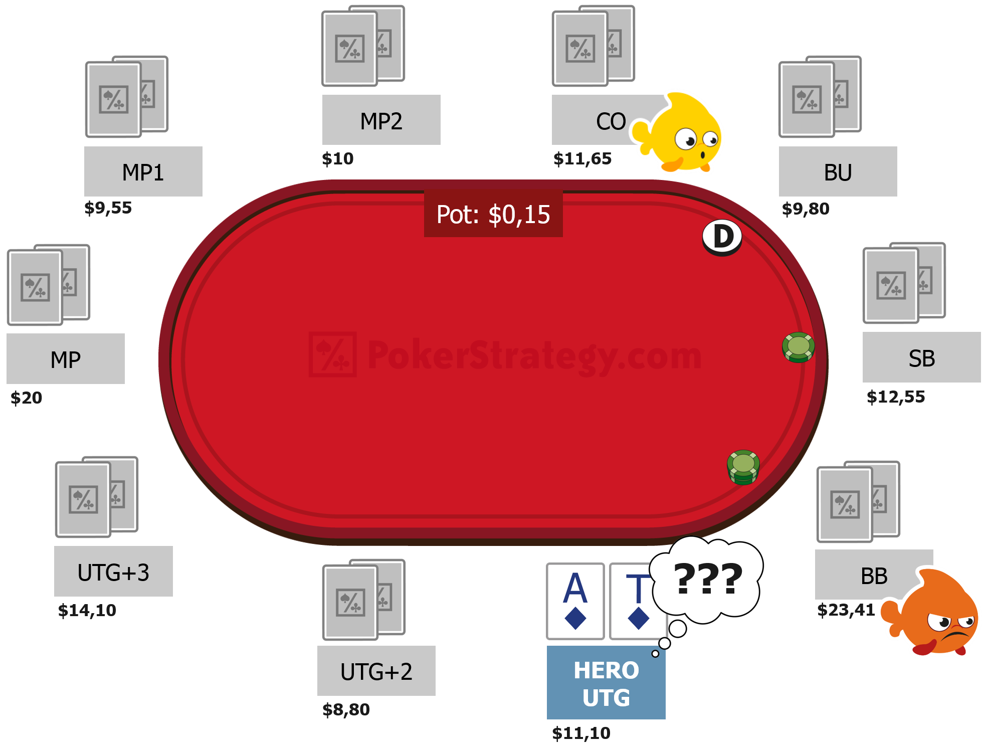Плюс игрок испытывает психологическое давление, так как принимать решение нужно опираясь исключительно на свои карманные карты. Ошибка здесь может сильно огорчить и явиться поводом для тильта, что неминуемо приведет к дальнейшим поражениям. Вот почему на UTG рекомендуется придерживаться только тайтового стиля, а проявлять агрессию лишь с премиальными картами типа два туза, два короля.